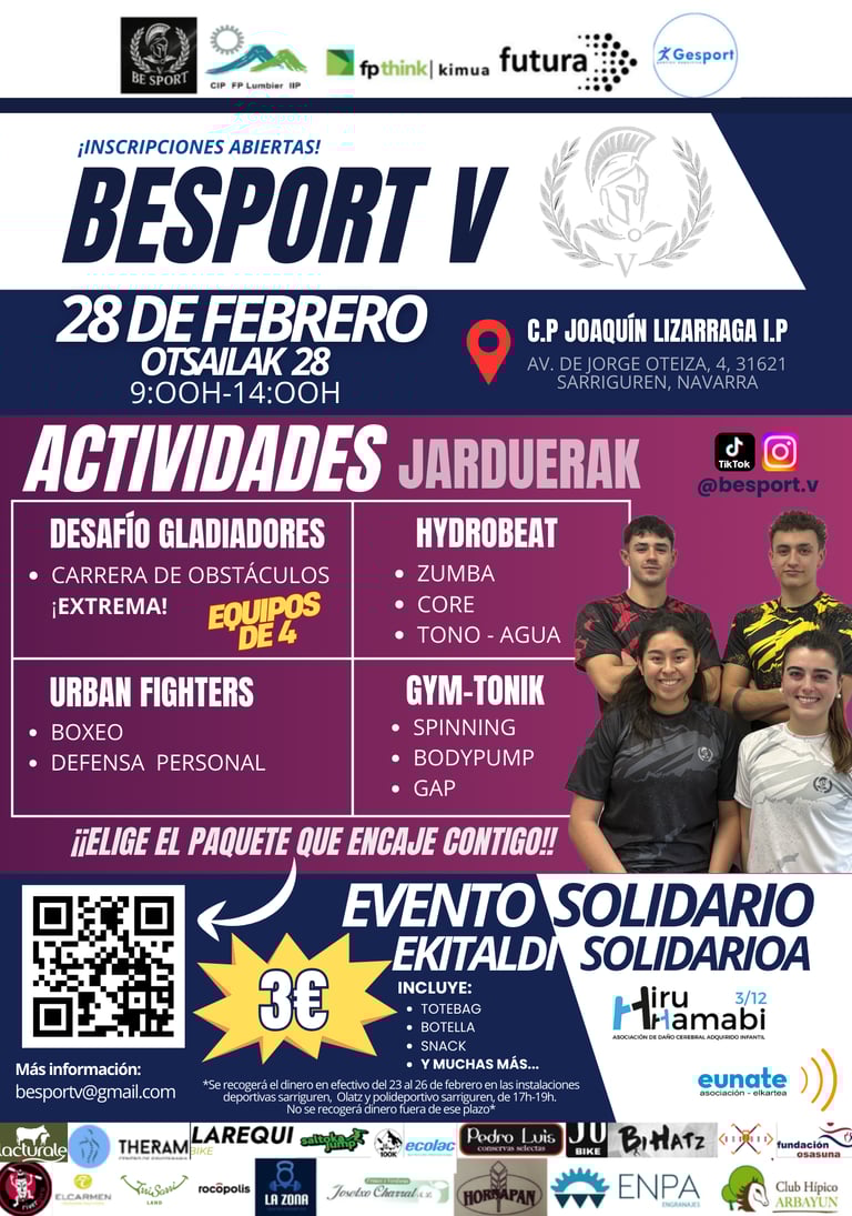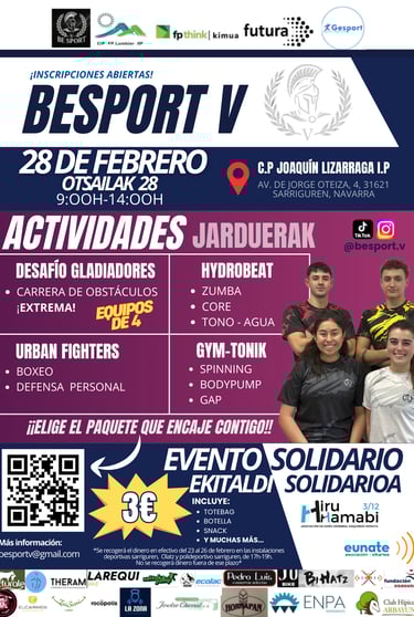 El evento final será el 28 de febrero en el CP Joaquín Lizarraga IP ubicado en Sarriguren, un lugar accesible y cómodo para todos.